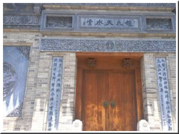 《氏族典》一书之中的《赵姓部汇考》云:“天水赵之望出。”天水赵氏为战国七雄之一赵国王族的直系后裔,其后代于汉代封侯、唐朝拜相,血脉分布于神州大地。就是“居涿郡者后有天下”的赵宋宗室大脉,也是天水赵氏家族的后裔分支。由于天水赵姓人口甚众,分布极广,故而居为大众化的赵姓宗族文化的源头与代表。