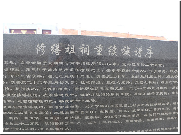 河北邯郸市峰峰矿区峰峰镇上官庄鹿氏字辈:“敬国正富贵,家裕庆丰年”